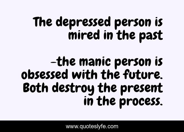 "the manic person is obsessed with the future. Both destroy the present in the process. Quotes." Quoteslyfe.com, 2025. Sat. 06 Dec. 2025. <https://www.quoteslyfe.com/quote/The-depressed-person-is-mired-in-the-114322>.
