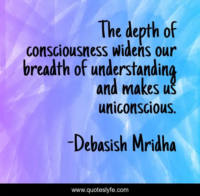 This page presents the quote "The depth of consciousness widens our breadth of understanding and makes us uniconscious.". Author of this quote is Debasish Mridha. This quote is about miraboli, consciousness, oscar-wilde, philosophy, debasish-mridha, understanding, quotes, uniconscious, debasish-mridha-md,.