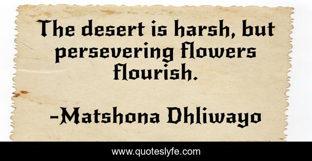 "Matshona Dhliwayo Quotes." Quoteslyfe.com, 2025. Fri. 05 Dec. 2025. <https://www.quoteslyfe.com/quote/The-desert-is-harsh-but-persevering-flowers-280312>.