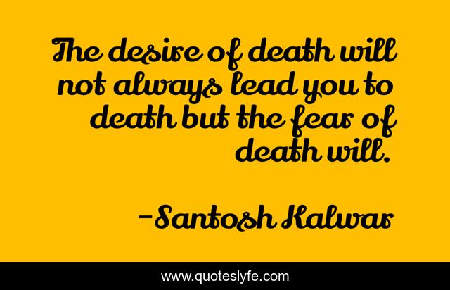 This page presents the quote "The desire of death will not always lead you to death but the fear of death will.". Author of this quote is Santosh Kalwar. This quote is about desire, death,.