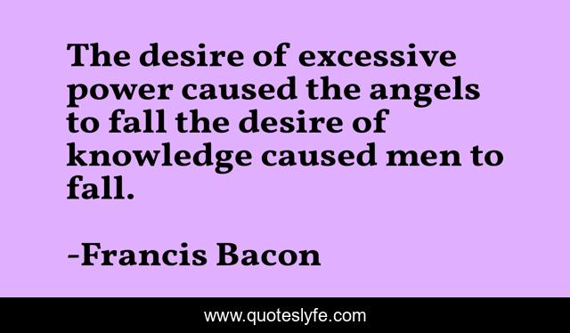 This page presents the quote "The desire of excessive power caused the angels to fall the desire of knowledge caused men to fall.". Author of this quote is Francis Bacon. This quote is about men, power, fall,.