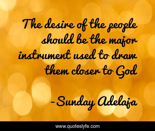 This page presents the quote "The desire of the people should be the major instrument used to draw them closer to God". Author of this quote is Sunday Adelaja. This quote is about desire, ministration, life, blessing, finance, ministry, money, work, wants,.