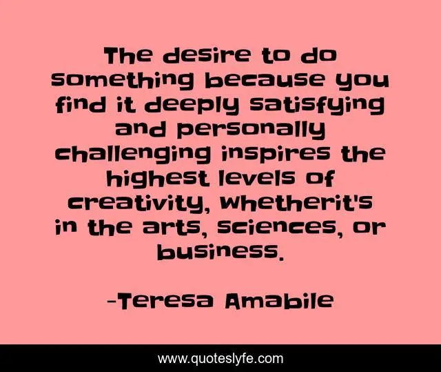 This page presents the quote "The desire to do something because you find it deeply satisfying and personally challenging inspires the highest levels of creativity, whetherit's in the arts, sciences, or business.". Author of this quote is Teresa Amabile. This quote is about satisfaction, challenge, fulfillment, motivation,.