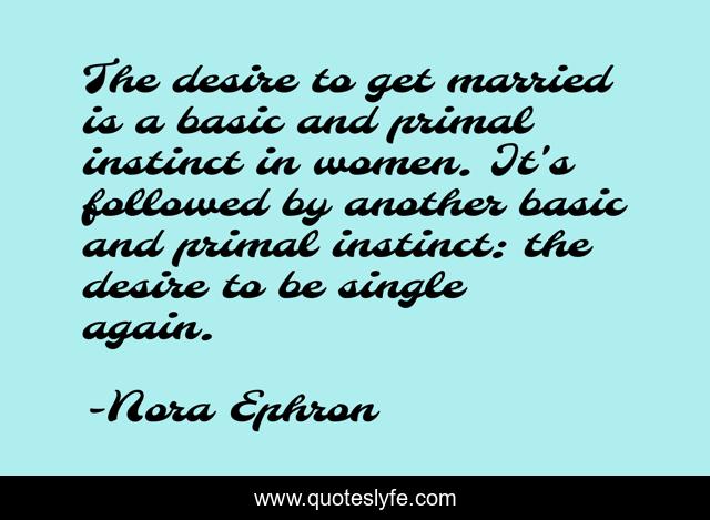 This page presents the quote "The desire to get married is a basic and primal instinct in women. It's followed by another basic and primal instinct: the desire to be single again.". Author of this quote is Nora Ephron. This quote is about bachelorhood, singles, marriage, women,.