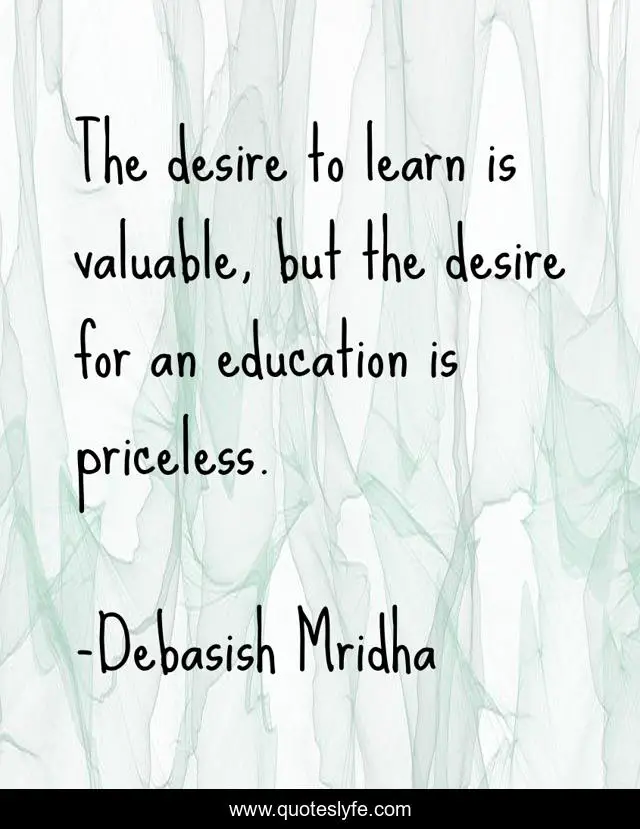 This page presents the quote "The desire to learn is valuable, but the desire for an education is priceless.". Author of this quote is Debasish Mridha. This quote is about desire, life, love, knowledge, inspirational, intelligence, philosophy, affection, valuable,.