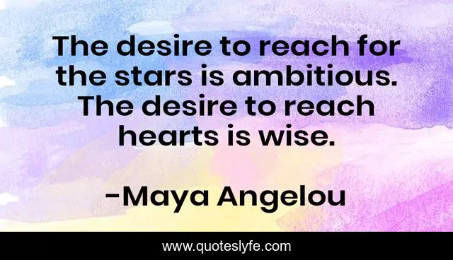 This page presents the quote "The desire to reach for the stars is ambitious. The desire to reach hearts is wise.". Author of this quote is Maya Angelou. This quote is about enthusiasm, ambition, inspirational, wisdom,.
