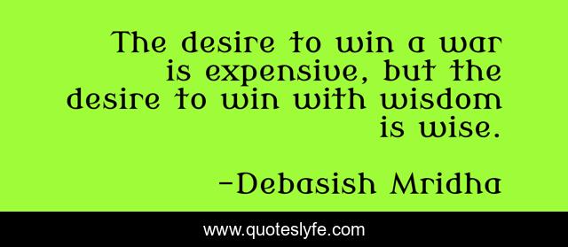 This page presents the quote "The desire to win a war is expensive, but the desire to win with wisdom is wise.". Author of this quote is Debasish Mridha. This quote is about life, love, knowledge, inspirational, intelligence, philosophy, wisdom, quotes, affection,.