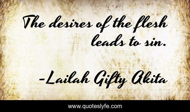 This page presents the quote "The desires of the flesh leads to sin.". Author of this quote is Lailah Gifty Akita. This quote is about flesh, sin, desires, christian-living,.