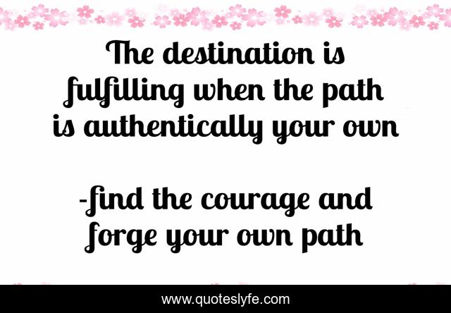This page presents the quote "The destination is fulfilling when the path is authentically your own". Author of this quote is find the courage and forge your own path. .