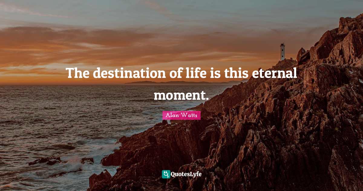 This page presents the quote "The destination of life is this eternal moment.". Author of this quote is Alan Watts. This quote is about life, life is, moments, destination, eternal,.
