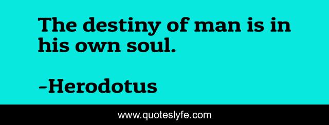 This page presents the quote "The destiny of man is in his own soul.". Author of this quote is Herodotus. This quote is about self, reliance,.