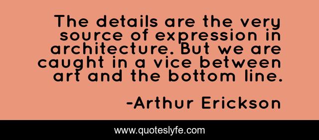 This page presents the quote "The details are the very source of expression in architecture. But we are caught in a vice between art and the bottom line.". Author of this quote is Arthur Erickson. This quote is about art, design, details,.