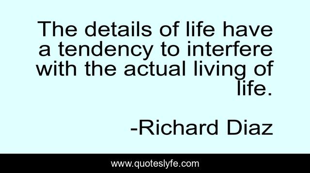 This page presents the quote "The details of life have a tendency to interfere with the actual living of life.". Author of this quote is Richard Diaz. This quote is about living, life, details,.