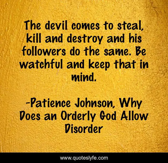 "Patience Johnson, Why Does an Orderly God Allow Disorder Quotes." Quoteslyfe.com, 2025. Sun. 07 Dec. 2025. <https://www.quoteslyfe.com/quote/The-devil-comes-to-steal-kill-and-47899>.