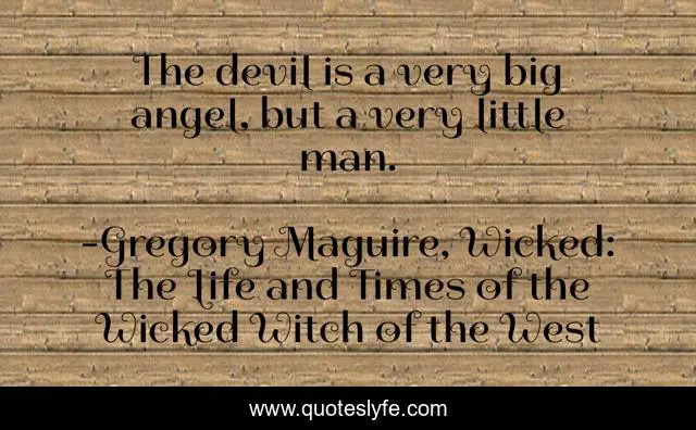 This page presents the quote "The devil is a very big angel, but a very little man.". Author of this quote is Gregory Maguire, Wicked: The Life and Times of the Wicked Witch of the West. This quote is about devil, angel, man,.