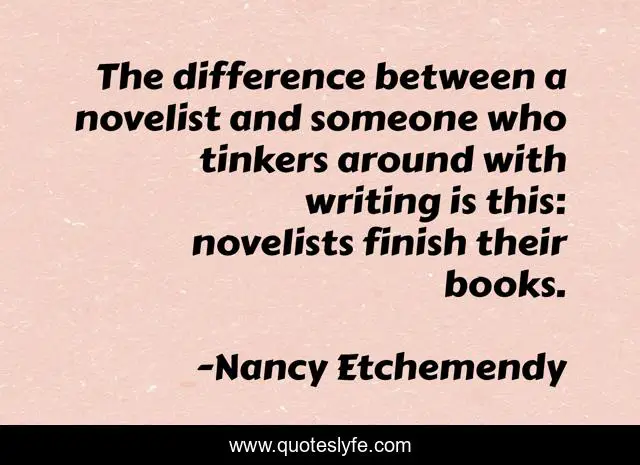 This page presents the quote "The difference between a novelist and someone who tinkers around with writing is this: novelists finish their books.". Author of this quote is Nancy Etchemendy. This quote is about novelist, books, writing,.