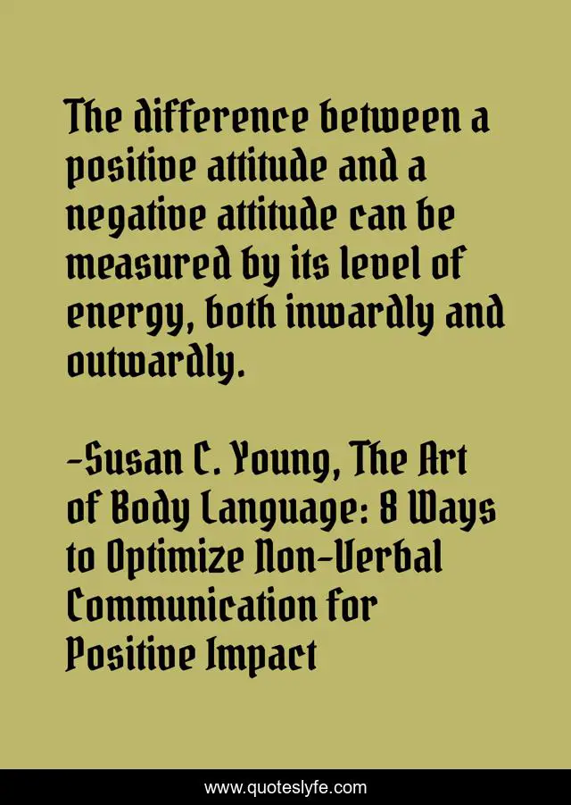 "Susan C. Young, The Art of Body Language: 8 Ways to Optimize Non-Verbal Communication for Positive Impact Quotes." Quoteslyfe.com, 2025. Fri. 05 Dec. 2025. <https://www.quoteslyfe.com/quote/The-difference-between-a-positive-attitude-and-227441>.