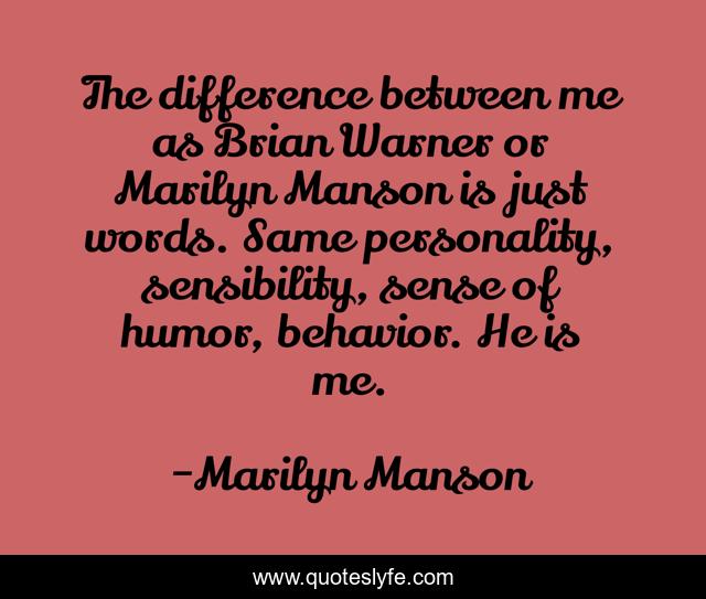 This page presents the quote "The difference between me as Brian Warner or Marilyn Manson is just words. Same personality, sensibility, sense of humor, behavior. He is me.". Author of this quote is Marilyn Manson. This quote is about words, behavior, personality,.