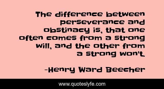 "Henry Ward Beecher Quotes." Quoteslyfe.com, 2025. Sat. 06 Dec. 2025. <https://www.quoteslyfe.com/quote/The-difference-between-perseverance-and-obstinacy-is-243675>.