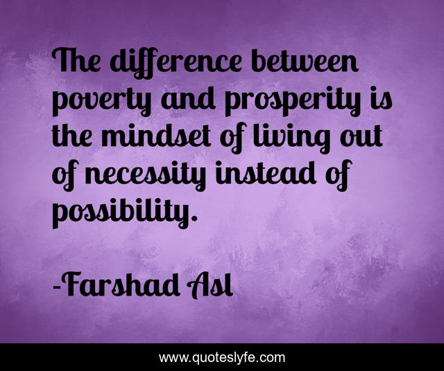This page presents the quote "The difference between poverty and prosperity is the mindset of living out of necessity instead of possibility.". Author of this quote is Farshad Asl. This quote is about prosperity, poverty, necessity, possibility, mindset,.