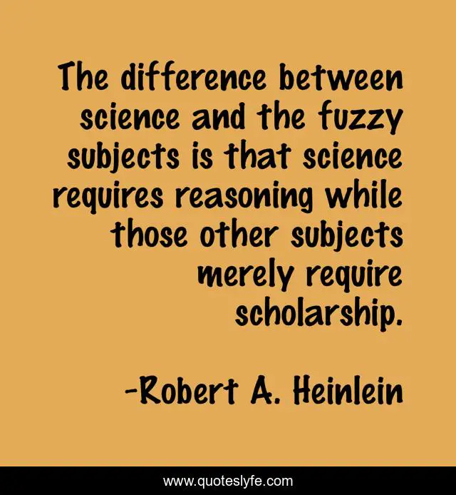 This page presents the quote "The difference between science and the fuzzy subjects is that science requires reasoning while those other subjects merely require scholarship.". Author of this quote is Robert A. Heinlein. This quote is about difference, scholarship,.