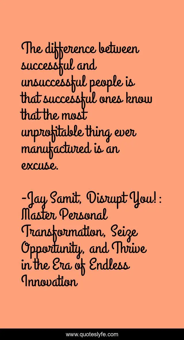 "Jay Samit, Disrupt You!: Master Personal Transformation, Seize Opportunity, and Thrive in the Era of Endless Innovation Quotes." Quoteslyfe.com, 2025. Sun. 07 Dec. 2025. <https://www.quoteslyfe.com/quote/The-difference-between-successful-and-unsuccessful-people-106501>.
