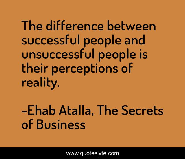 This page presents the quote "The difference between successful people and unsuccessful people is their perceptions of reality.". Author of this quote is Ehab Atalla, The Secrets of Business. This quote is about business, entrepreneurship,.