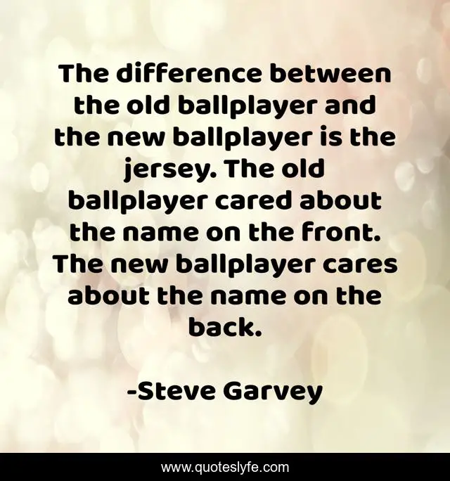 This page presents the quote "The difference between the old ballplayer and the new ballplayer is the jersey. The old ballplayer cared about the name on the front. The new ballplayer cares about the name on the back.". Author of this quote is Steve Garvey. This quote is about new, difference, name,.