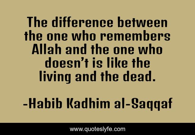 This page presents the quote "The difference between the one who remembers Allah and the one who doesn’t is like the living and the dead.". Author of this quote is Habib Kadhim al-Saqqaf. This quote is about living, scholar, god, allah, dead, habib, remembrance,.