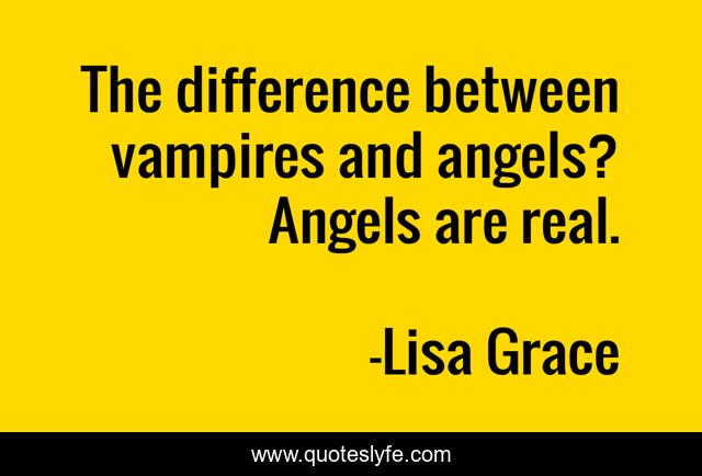 This page presents the quote "The difference between vampires and angels? Angels are real.". Author of this quote is Lisa Grace. This quote is about fiction, supernatural, paranormal-romance, christians, inspiration,.