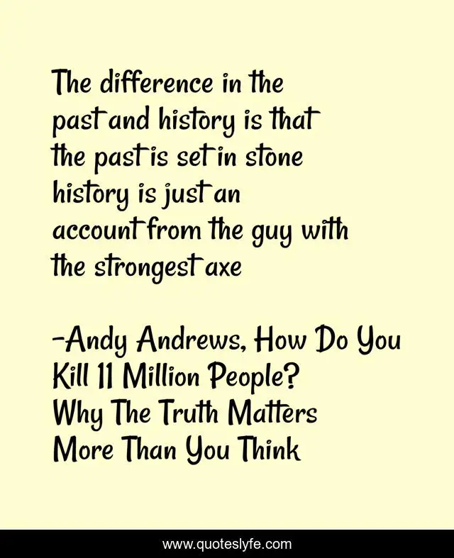 "Andy Andrews, How Do You Kill 11 Million People? Why The Truth Matters More Than You Think Quotes." Quoteslyfe.com, 2025. Sat. 06 Dec. 2025. <https://www.quoteslyfe.com/quote/The-difference-in-the-past-and-history-236022>.