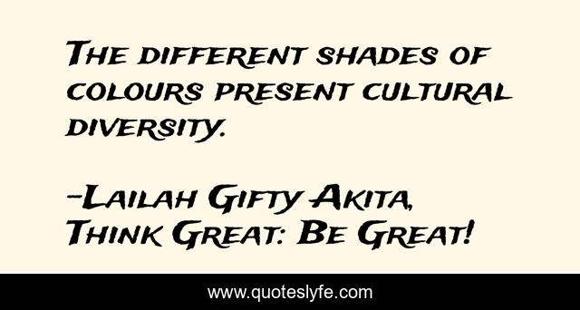 "Lailah Gifty Akita, Think Great: Be Great! Quotes." Quoteslyfe.com, 2025. Sat. 06 Dec. 2025. <https://www.quoteslyfe.com/quote/The-different-shades-of-colours-present-cultural-98801>.