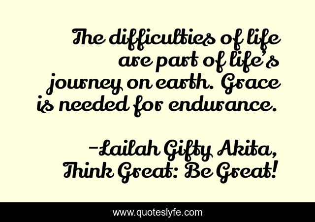 "Lailah Gifty Akita, Think Great: Be Great! Quotes." Quoteslyfe.com, 2025. Fri. 05 Dec. 2025. <https://www.quoteslyfe.com/quote/The-difficulties-of-life-are-part-of-121414>.
