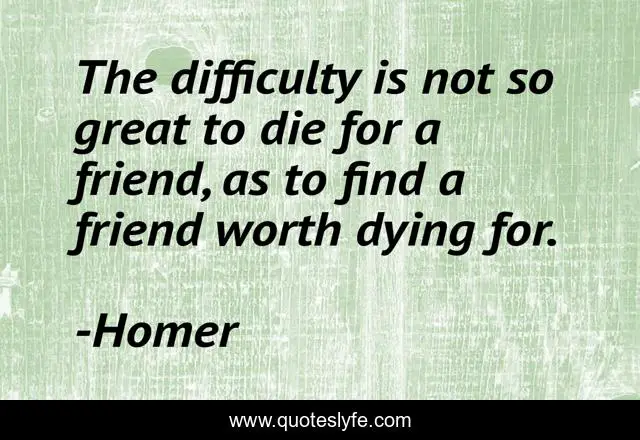 This page presents the quote "The difficulty is not so great to die for a friend, as to find a friend worth dying for.". Author of this quote is Homer. This quote is about die, friend, dying,.