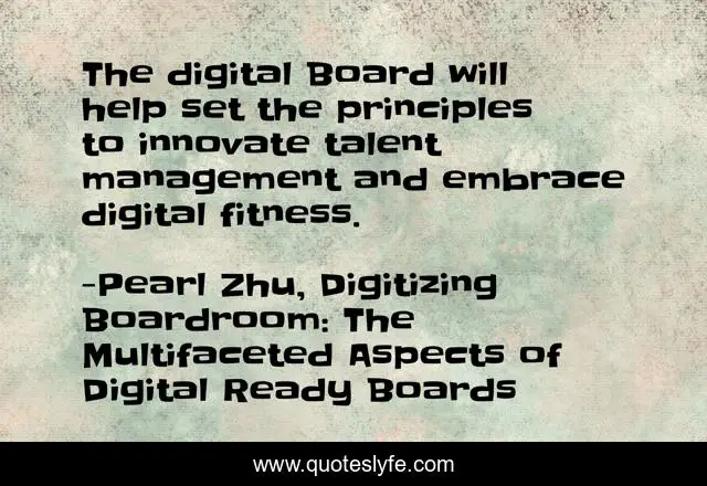 This page presents the quote "The digital Board will help set the principles to innovate talent management and embrace digital fitness.". Author of this quote is Pearl Zhu, Digitizing Boardroom: The Multifaceted Aspects of Digital Ready Boards. This quote is about boards, digitalization, innovation,.