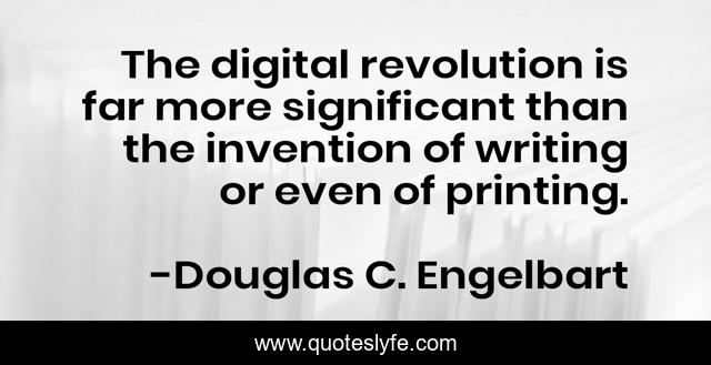 This page presents the quote "The digital revolution is far more significant than the invention of writing or even of printing.". Author of this quote is Douglas C. Engelbart. This quote is about revolution, invention, computing, writing, pioneer, printing, internet,.