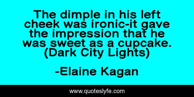 This page presents the quote "The dimple in his left cheek was ironic-it gave the impression that he was sweet as a cupcake. (Dark City Lights)". Author of this quote is Elaine Kagan. This quote is about funny, humor, humorous, appearances, anthologies, short-stories, misleading, comedy, irony,.