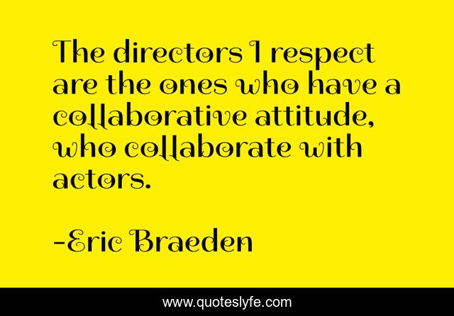 This page presents the quote "The directors I respect are the ones who have a collaborative attitude, who collaborate with actors.". Author of this quote is Eric Braeden. This quote is about respect, directors,.