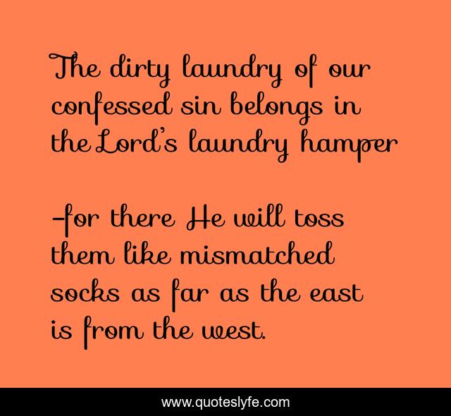 "for there He will toss them like mismatched socks as far as the east is from the west. Quotes." Quoteslyfe.com, 2025. Tue. 09 Dec. 2025. <https://www.quoteslyfe.com/quote/The-dirty-laundry-of-our-confessed-sin-256009>.