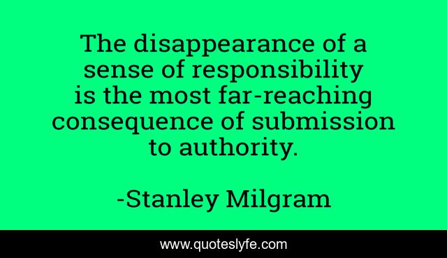 "Stanley Milgram Quotes." Quoteslyfe.com, 2025. Sat. 06 Dec. 2025. <https://www.quoteslyfe.com/quote/The-disappearance-of-a-sense-of-responsibility-102282>.