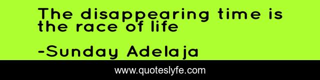 This page presents the quote "The disappearing time is the race of life". Author of this quote is Sunday Adelaja. This quote is about disappearing-time, life, blessing, finance, money, work, job, race, purpose,.