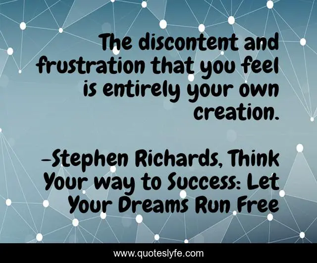 "Stephen Richards, Think Your way to Success: Let Your Dreams Run Free Quotes." Quoteslyfe.com, 2025. Mon. 08 Dec. 2025. <https://www.quoteslyfe.com/quote/The-discontent-and-frustration-that-you-feel-35958>.