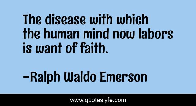 This page presents the quote "The disease with which the human mind now labors is want of faith.". Author of this quote is Ralph Waldo Emerson. This quote is about faith, unity,.