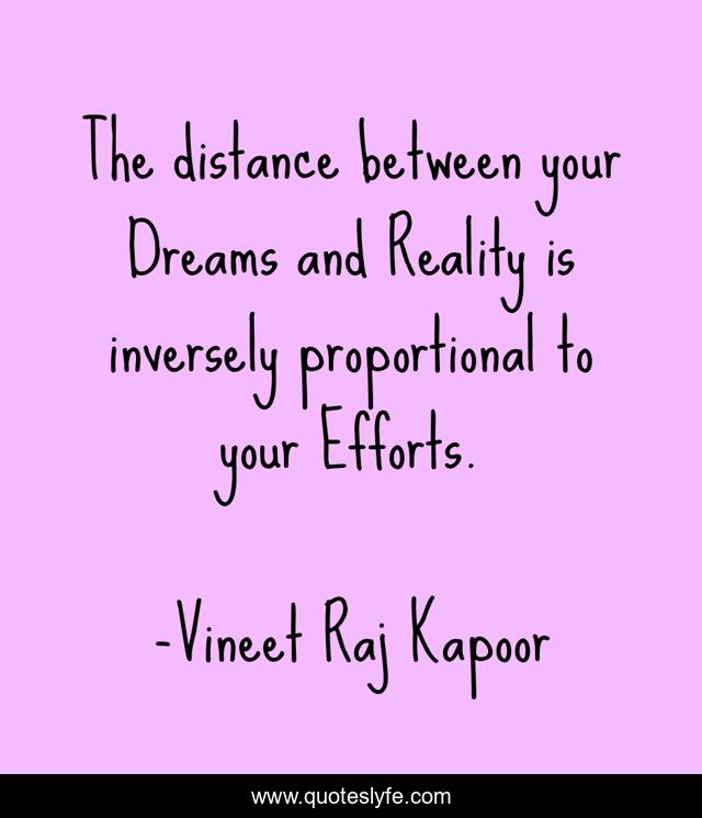 "Vineet Raj Kapoor Quotes." Quoteslyfe.com, 2025. Fri. 05 Dec. 2025. <https://www.quoteslyfe.com/quote/The-distance-between-your-Dreams-and-Reality-29360>.