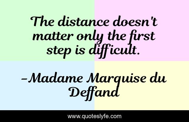 This page presents the quote "The distance doesn't matter only the first step is difficult.". Author of this quote is Madame Marquise du Deffand. .