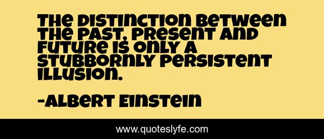 This page presents the quote "The distinction between the past, present and future is only a stubbornly persistent illusion.". Author of this quote is Albert Einstein. This quote is about past, illusion, present,.