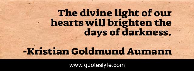 This page presents the quote "The divine light of our hearts will brighten the days of darkness.". Author of this quote is Kristian Goldmund Aumann. This quote is about enthusiasm, inspirational,.