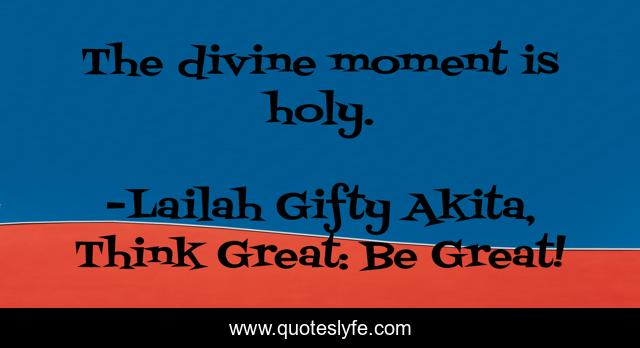 "Lailah Gifty Akita, Think Great: Be Great! Quotes." Quoteslyfe.com, 2025. Sat. 06 Dec. 2025. <https://www.quoteslyfe.com/quote/The-divine-moment-is-holy-85103>.