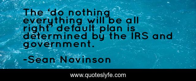 This page presents the quote "The ‘do nothing everything will be all right’ default plan is determined by the IRS and government.". Author of this quote is Sean Novinson. This quote is about finance, financial-advice, financial-planning,.