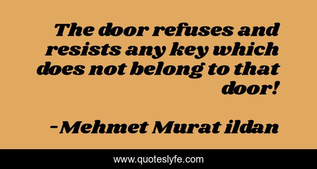 This page presents the quote "The door refuses and resists any key which does not belong to that door!". Author of this quote is Mehmet Murat ildan. This quote is about turkish-aphorisms, key, door, turkish-literature, ildan-wise-sayings, turkish, ildan-wisdom, turkish-sayings, turkish-playwrights,.